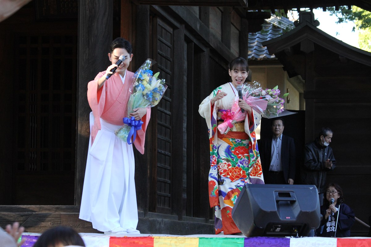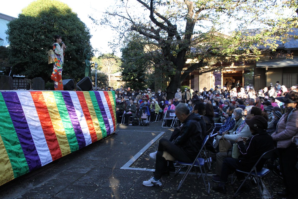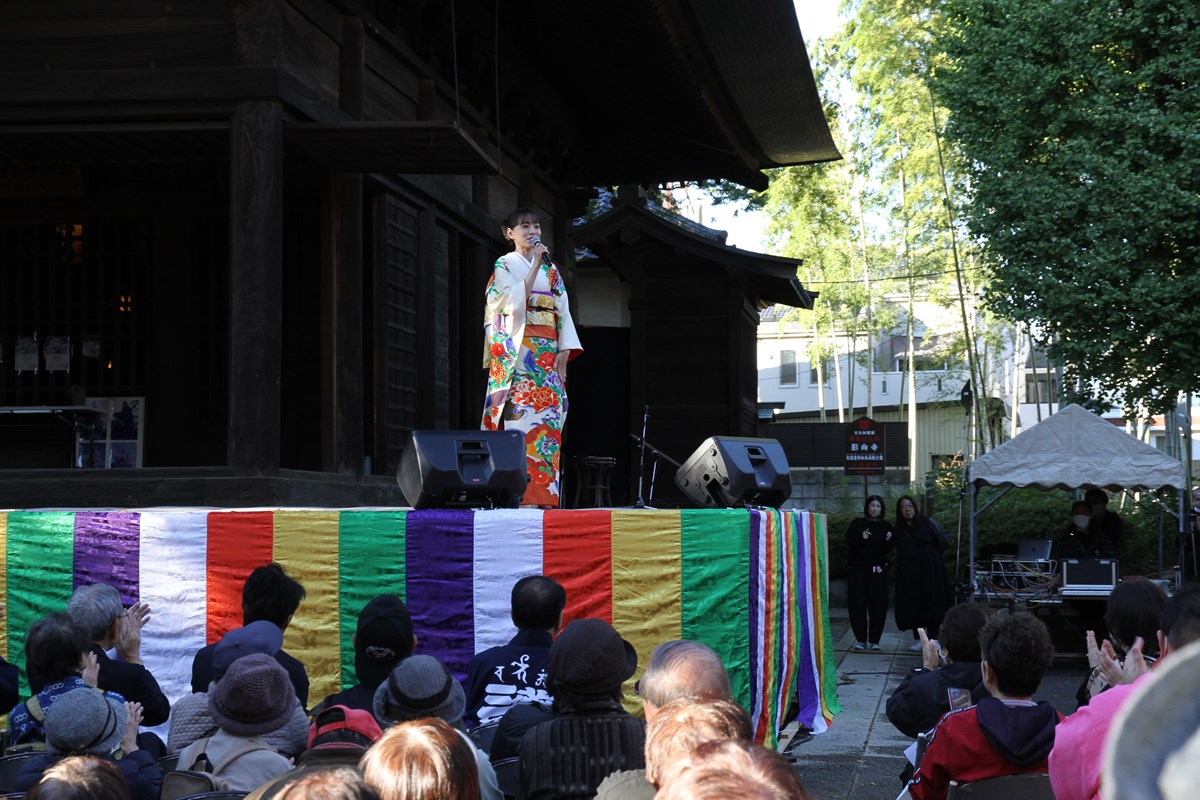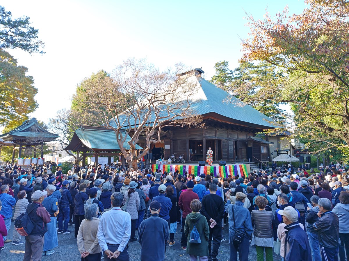 今年の縁日も天気に恵まれ、とても過ごしやすい気温の中開催されました。太子堂の移築工事中は10月開催でしたが、工事も終わり、また開催日を11月3日に戻しての縁日、「晴れの特異日」と言われる通り見事に晴れました。今年は屋台もたくさん出て大変多くの方々が訪れました。午前は護摩供養会、午後からは聖徳太子供養会、杜このみさん、彩青さん、棚瀨敬太さんによるコンサート、豪華景品の抽選会等、盛りだくさんで大いに賑わいました。重文史跡保存会の皆さん、ご尽力いただきありがとうございました。来年はどんな縁日になるのか楽しみです。