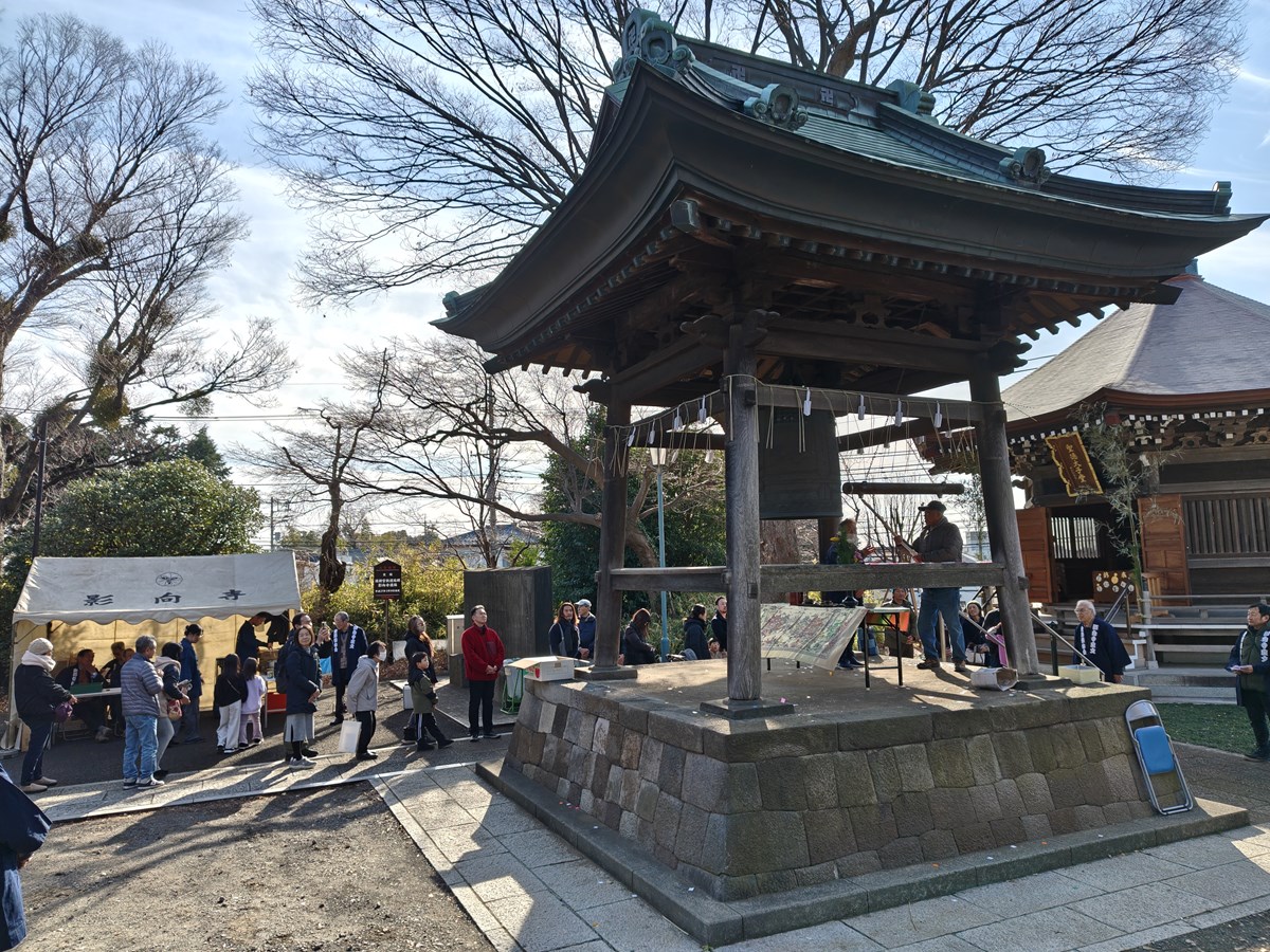 時間を昼間に変更して行われる招福の鐘も今年で7回目になりました。今年もたくさんの方々に鐘をついていただきました。天候に恵まれ、寒さを感じることなく鐘つきができました。参加された皆様、ありがとうございました。